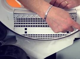 La ventola di raffreddamento è presente su tutte le asciugatrici a condensazione. Il suo ruolo è quello di aspirare l'aria fresca dell'esterno per raffreddare l’interno. Si trova nella parte inferiore del dispositivo.