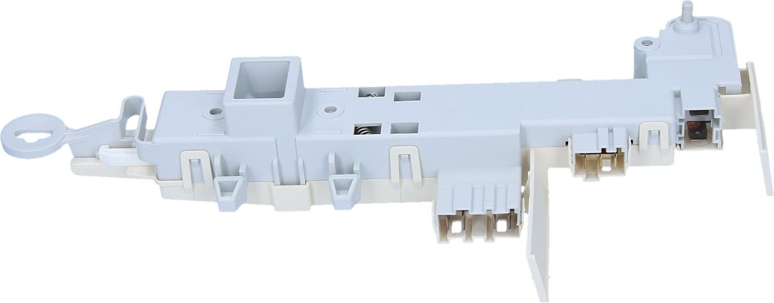 Posizionato infatti in prossimità del foro d'apertura dell'oblò, dove si va ad incastrare il dente di blocco, esso impedisce che venga effettuata un'apertura avventata o involontaria dell'oblò stesso.