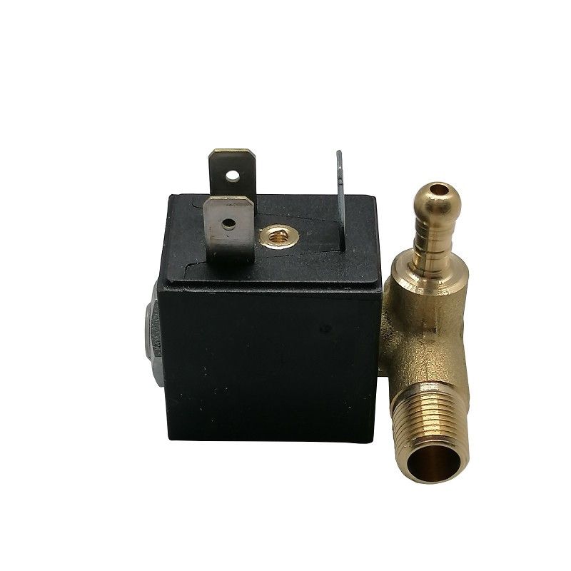 Elettrovalvola a 90°, attacco maschio con portagomma in uscita destra normalmente chiusa