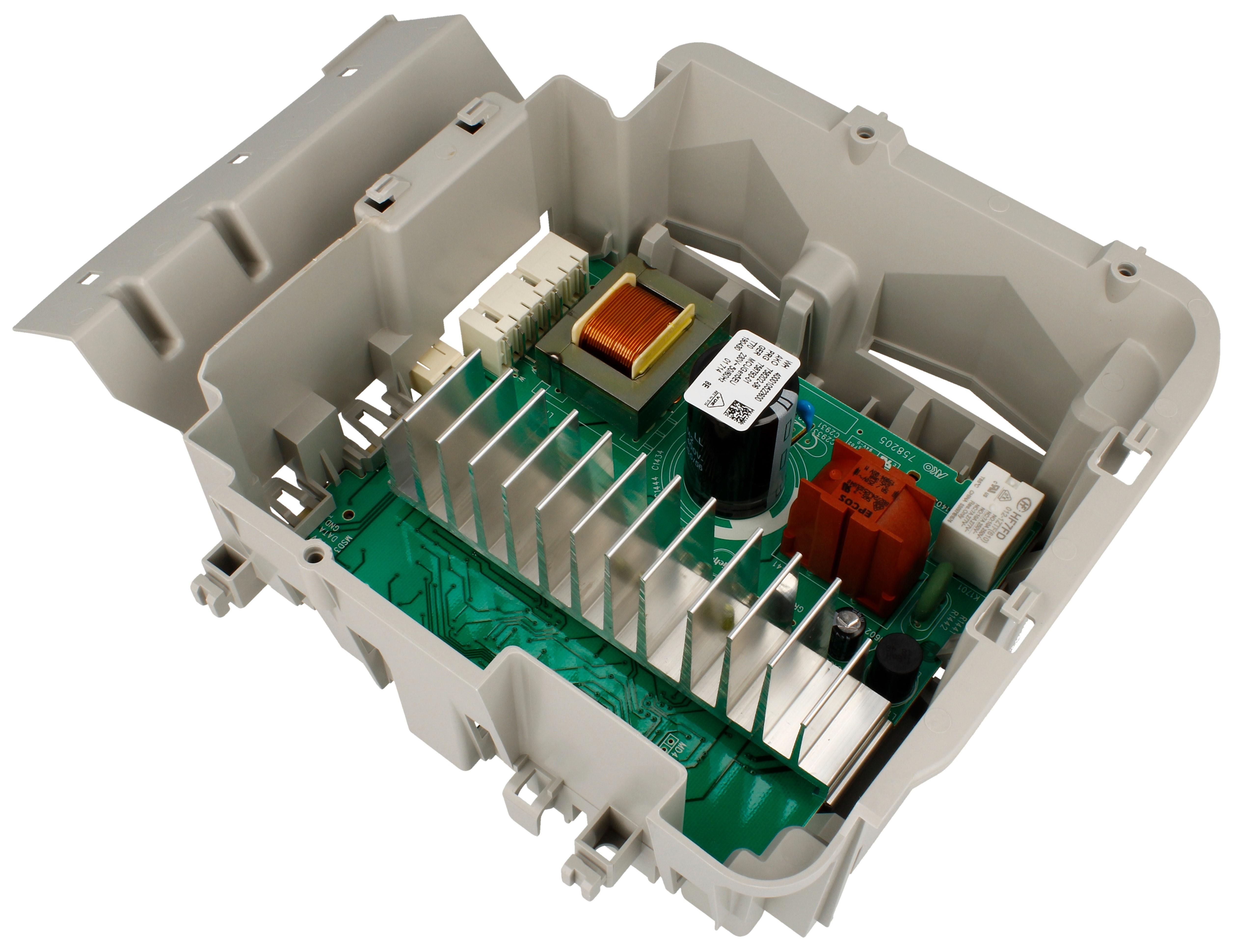 La scheda elettronica è un considerato un modulo comando per il motore delle lavatrici. Ogni comando e ogni funzione sono regolati da essa. Solitamente godono di un sistema detto di "auto-diagnosi", ovvero che segnala gli errori attraverso delle componenti elettronici che si trovano sulla scheda.