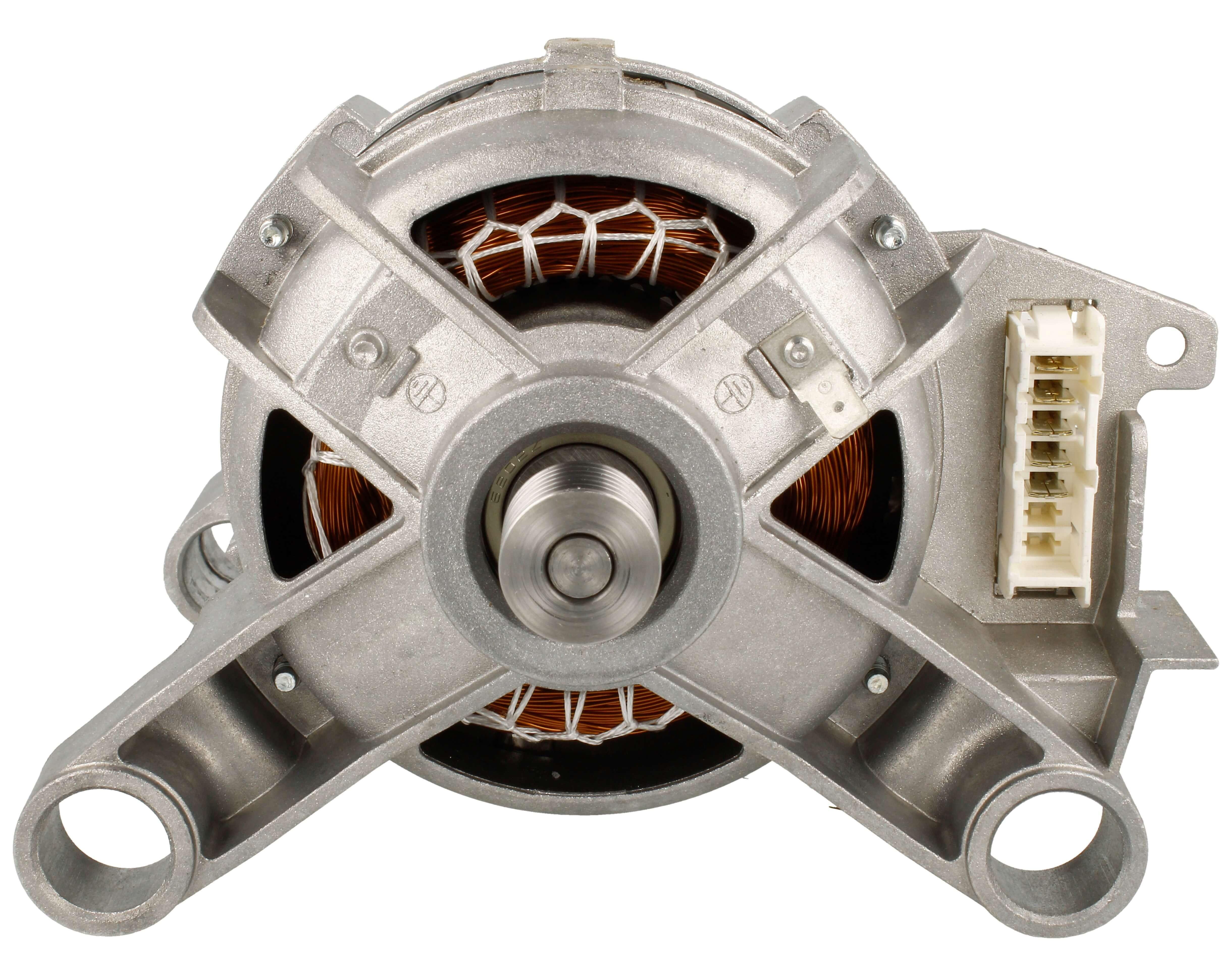 Il motore della lavatrice è parte fondamentale di un sistema formato da un recipiente cilindrico a chiusura stagna che contiene un cestello, cioè un cilindro coassiale forato, sospesi alla struttura principale della lavatrice.