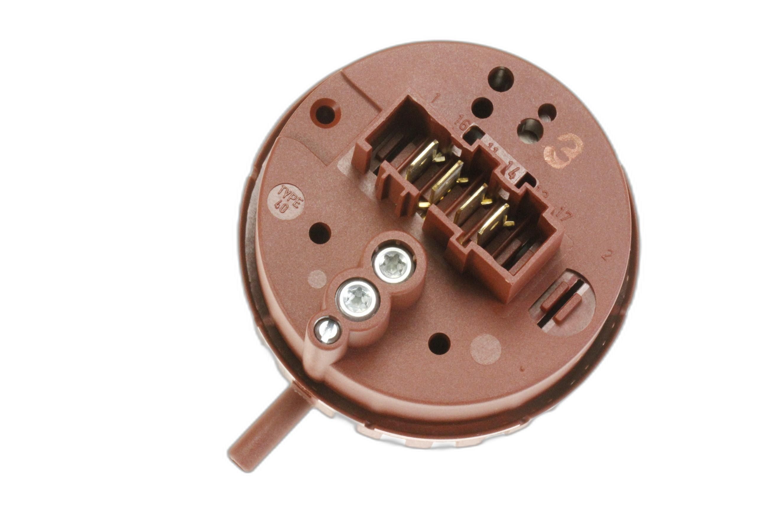 Il pressostato è un dispositivo tarato in origine alla costruzione dell'elettrodomestico che consente di chiudere o aprire un sensore elettrico in base alla quantità d'acqua che sta entrando nel cestello.