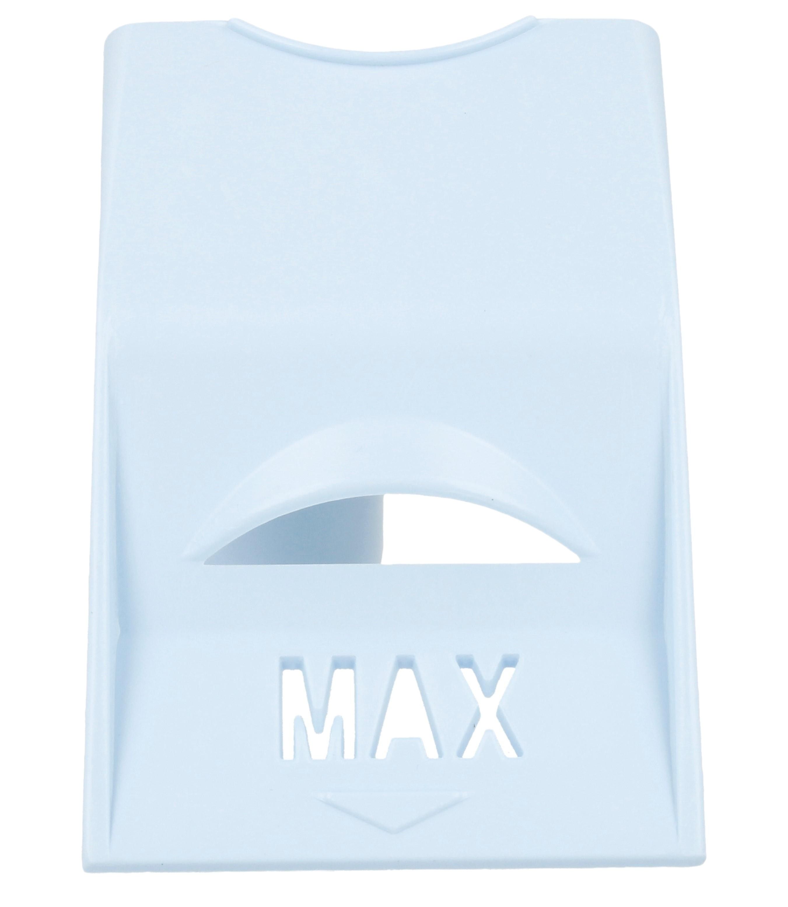 Sulla parte superiore riportano l'iscrizione "max" che indica il massimo livello da raggiungere per il detersivo da inserire.